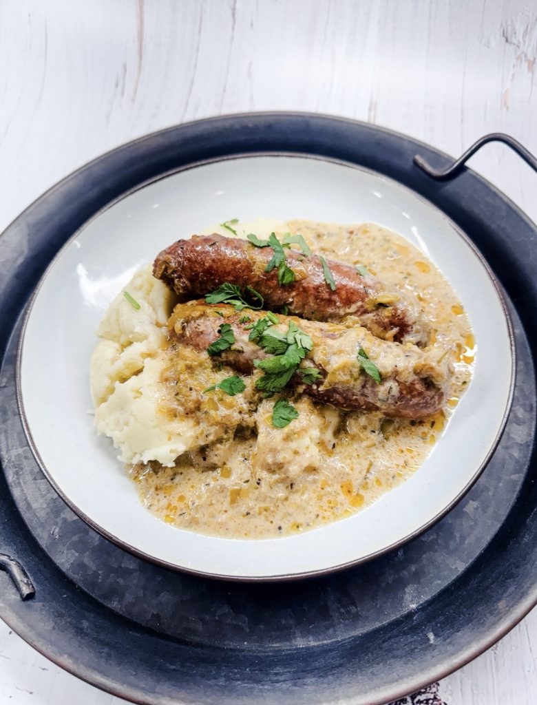 Creamy Sausages and Leeks over Mash